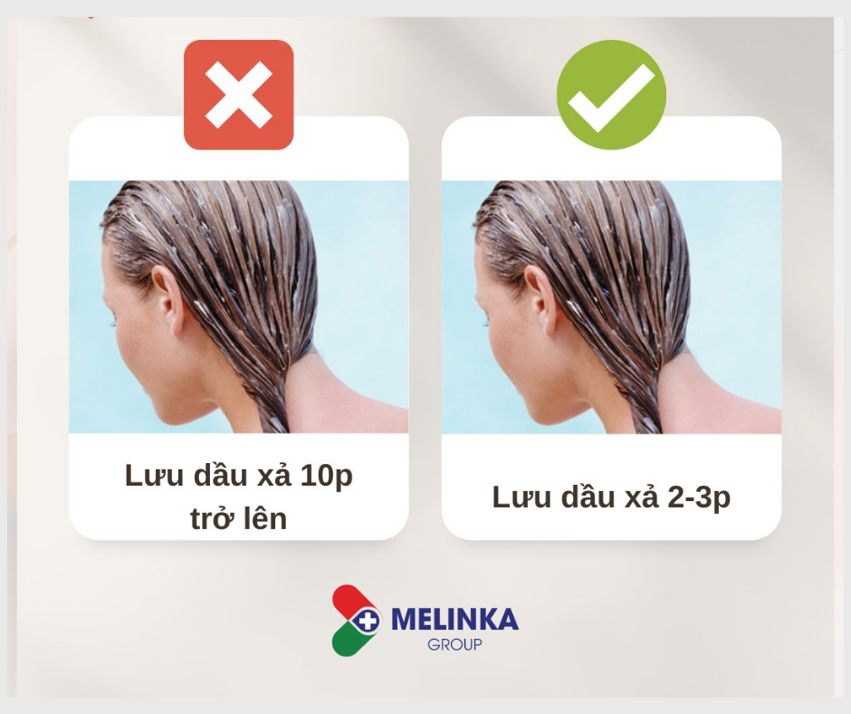 Dầu xả chứa nhiều dưỡng chất tạo ra lớp bảo vệ biểu bì và giúp tóc trở lên suôn mượt hơn. Thông thường, chỉ nên lưu lại trong vòng từ 2-3 phút rồi xả lại với nước sạch. Nếu để thời gian lưu quá lâu trên 10 phút dẫn đến các cặn dầu xả bám trên tóc. Khi xả lại bằng nước sạch rất khó trôi, tóc dễ dính bết và bám bụi bẩn.