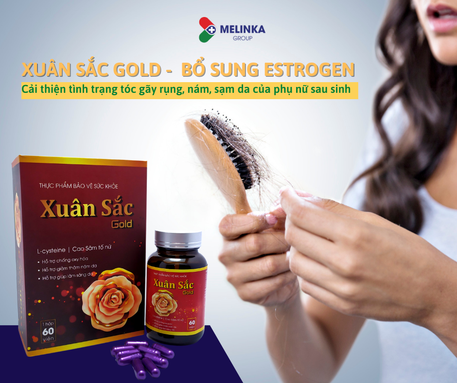 Thiếu hụt estrogen là một trong những nguyên nhân gây ra tình trạng rụng tóc. Do đó, các mẹ sau sinh có thể tăng cường estrogen thông qua chế độ ăn giàu mầm đậu nành hoặc các thực phẩm bảo vệ sức khỏe Xuân Sắc Gold để cân bằng lại lượng estrogen trong cơ thể.