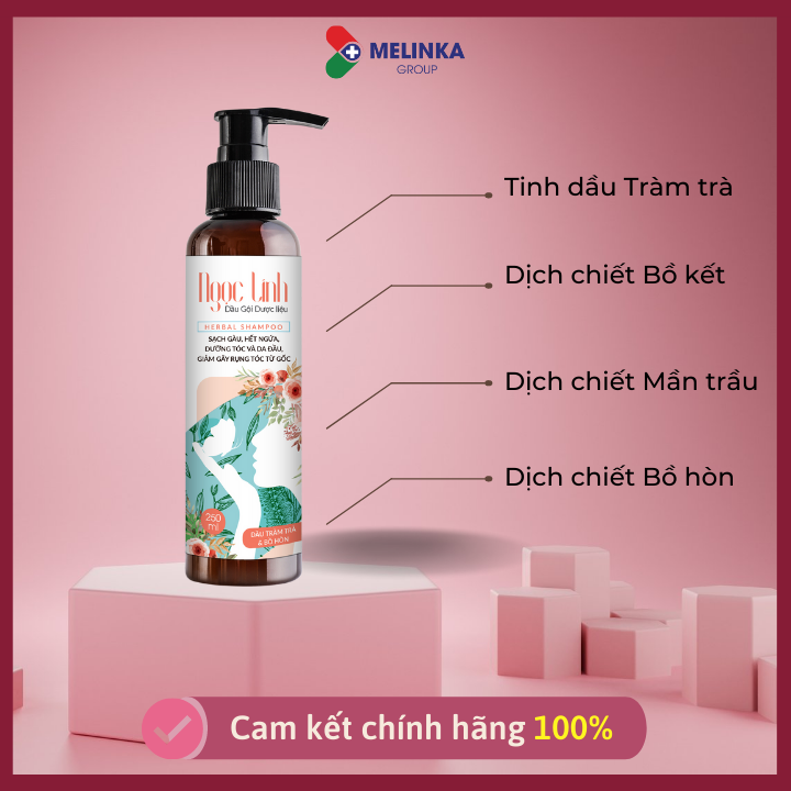 Nếu bạn đang muốn tìm kiếm một loại dầu gội có nguồn gốc từ các loại thảo dược thiên nhiên như trên thì dầu gội Ngọc Linh sẽ là một lựa chọn tuyệt vời bạn nên thử. Với chiết xuất từ các vị dược liệu bồ kết và cỏ mần trầu, Dầu gội Ngọc Linh giúp mái tóc luôn dài, đen óng ả. Để tăng tác dụng sạch da đầu, Melinka có bổ sung thêm bồ hòn là chất tẩy rửa tự nhiên giúp loại bỏ bụi bẩn.