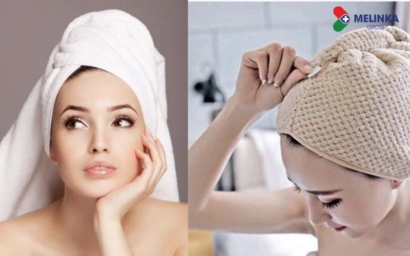 Việc dùng khăn khô thấm nhẹ từng phần tóc có thể tốn thời gian với nhiều người. Do đó phương pháp được họ chọn là quấn tóc trong khoảng tầm 10 đến 20 phút. Mặc dù phương pháp này nhanh chóng hơn so với thấm khô từng phần nhưng có thể gây tổn thương phần đuôi tóc nếu dùng quá thô bạo.