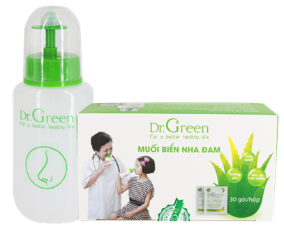 Cách sử dụng Bình rửa mũi Dr.Green: Cắt gói muối đi kèm, đổ vào 180ml nước đun sôi để nguội hoặc nước lọc RO sau đó đổ nước ấm đến vạch 240ml để nhiệt độ trong bình khoảng 35 độ C. Hơi nghiêng người về phía trước, đặt bình rửa mũi vào 1 bên mũi rồi bóp bình để tạo dòng chảy từ mũi bên này sang bên kia để rửa sạch vi khuẩn trong mũi. Thực hiện như vậy vài lần vào các buổi sáng, chiều, tối. Rửa mũi có tác dụng làm sạch mũi, làm loãng dịch tiết trong mũi và chống khô mũi. Các dịch tiết và bụi bẩn sẽ được tống ra khỏi mũi thông qua việc xì mũi, hắt hơi hoặc hút rửa mũi. Tuy nhiên, chúng ta phải lưu ý vấn đề giữ vệ sinh các chai, lọ xịt nhỏ mũi, nhất là phần tiếp xúc với mũi để tránh nhiễm khuẩn ngược dòng vào trong chai lọ, khi đó, lần dùng tiếp theo vô tình đưa vi khuẩn này vào mũi khiến bệnh dai dẳng, kéo dài. Tốt nhất không nên dùng chung lọ xịt, nhỏ mũi.