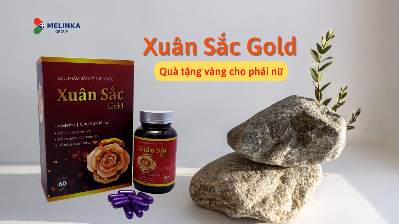 Xuân Sắc Gold - Gìn giữ nét đẹp thanh xuân cho phái nữ. Dựa trên bài thuốc tứ vật thang gồm 4 vị dược liệu quý đương quy, thục địa, bạch thược, xuyên khung, có tác dụng sinh huyết mà không trệ huyết, hành huyết mà không phá huyết. Thang thuốc bồi bổ và điều hòa khí huyết. Cao sâm tố nữ theo y học cổ truyền được mệnh danh là dược chất vàng thúc đẩy quá trình trẻ hóa làn da. Giúp tăng cường sản sinh estrogen mạnh mẽ, mang lại sự hồi xuân cho phái đẹp. Không những thế, Xuân Sắc Gold còn bổ sung thêm collagen, glutathione giúp dưỡng da trắng hồng rạng rỡ, căng mọng và mịn màng, giảm các vết thâm nám. Có thể nói, Xuân Sắc Gold là món quà chân ái đối với phái đẹp.