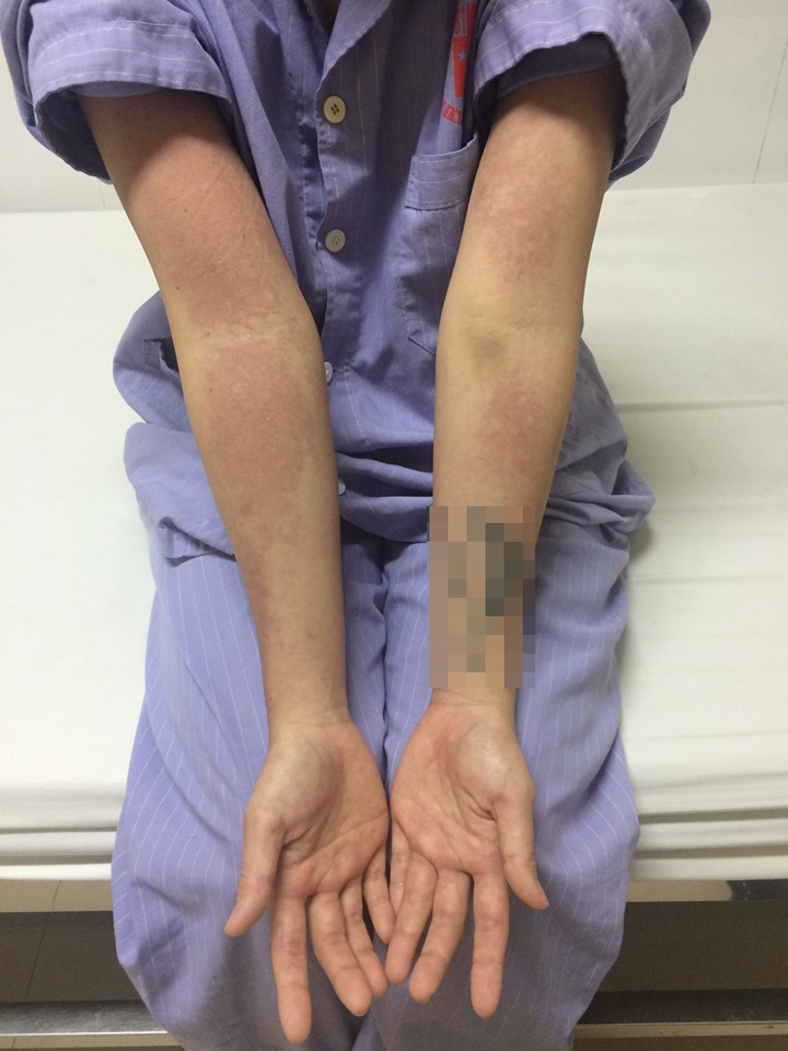 Bệnh nhân nữ tên là P, sinh năm 1992 ở thị xã Đông Triều, Quảng Ninh. Theo lời kể của bệnh nhân, nghe nhiều người mách sử dụng mỹ phẩm này da sẽ đẹp và trắng mịn hơn nên P đã không ngần ngại đặt mua từ người quen. Ngày 18/3 P bắt đầu sử dụng sản phẩm, 1 ngày sau đó da có biểu hiện sưng tấy nhẹ, sau đó bong 1 lớp da mỏng và da trắng hơn. Vì nghe theo lời người bán nói khi bôi kem vào da phải bong như vậy mới cho hiệu quả nên P tiếp tục dùng. Khoảng 10 ngày sau da lại xuất hiện tấy đỏ sau đó P sốt, phát ban ửng đỏ khắp mặt. Tuy nhiên, P sốt 3 ngày nhưng không khỏi sau đó mới đến khoa Cấp cứu - Bệnh viện Việt Nam - Thụy Điển.