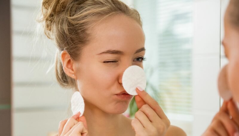 Nếu bạn không sử dụng loại mỹ phẩm nào thì việc tẩy trang không quá cần thiết. Thay vào đó, bạn chỉ cần sử dụng sữa rửa mặt có đều đặng 2 lần mỗi ngày (sáng sớm và trước khi đi ngủ) để loại bỏ lớp bụi bẩn sâu bên trong da. Bạn có thể lựa chọn sữa rửa mặt có tác dụng làm sạch bụi bẩn sâu kèm theo dưỡng ẩm ví dụ như Morinda White. Tác dụng dưỡng ẩm giúp tế bào căng hơn, từ đó thu hẹp lỗ chân lông, hỗ trợ giảm bụi bẩn tích tụ và mụn nhọt, đặc biệt làm mụn đầy đen.