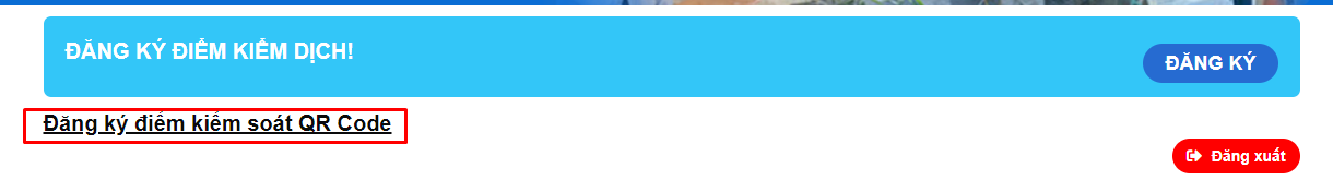 Bước 1: Truy cập vào link Website khai báo Bộ Y Tế chọn đăng ký điểm kiểm soát QR code