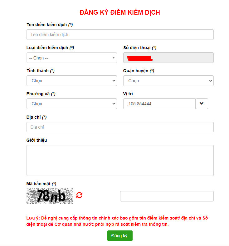 Bước 4: Điền mẫu đăng ký điểm kiểm dịch.