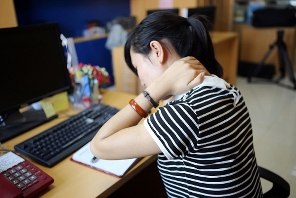 Ngồi làm việc ở bàn giấy nhiều thời gian như đánh máy dễ gây mỏi vai gáy.