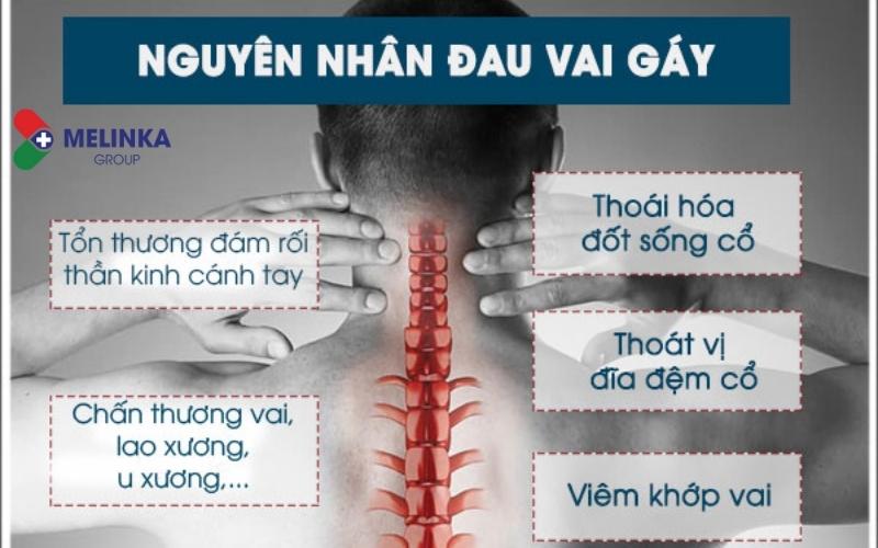 Đau mỏi vai gáy có thể do một số nguyên nhân như thoái hoá cột sống, nằm sai tư thế, do dị tật hay chấn thương trong lao động, sinh hoạt. Ngoài ra đau mỏi vai gáy cũng có thể do u đỉnh phổi, dây thần kinh bị chèn ép. Một số người hay có thói quen ngồi lâu trước quạt hoặc điều hòa cũng hay gặp tình trạng đau nhức cổ vai gáy.