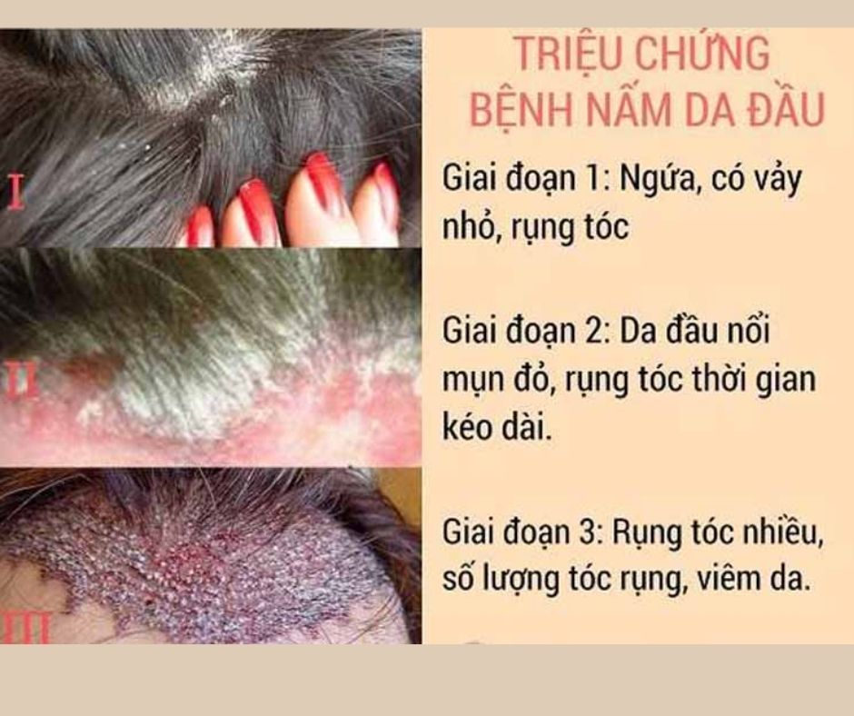 Sau khoảng 30 ngày từ ngày xuất hiện gàu trên da đầu thì hiện tượng rụng tóc bắt đầu diễn ra mạnh mẽ. Đây là hồi chuông báo hiệu tình trạng nấm da đầu đã đến giai đoạn nặng hơn. Tóc rụng có thể tạo thành mảng tròn hay bầu dục trên da đầu. Bạn cần sớm đến gặp bác sĩ để điều trị kịp thời, ngăn ngừa bệnh chuyển biến nặng hơn (có thể khiến tóc không mọc lại vĩnh viễn).
