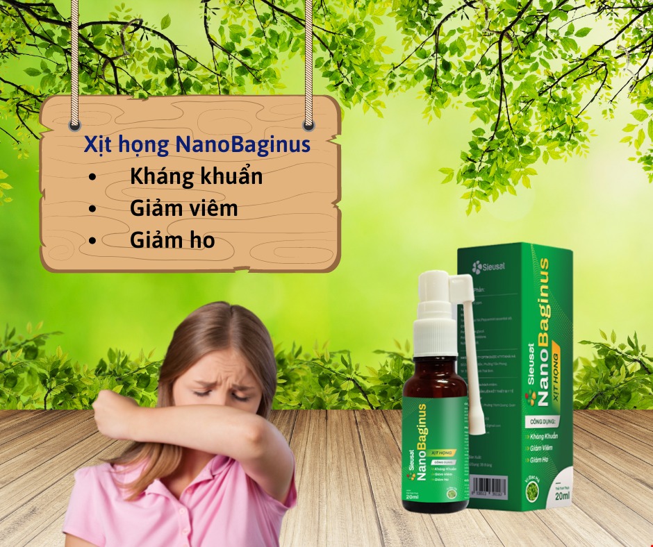 Bạn cũng có thể phòng ngừa viêm họng bằng xịt họng Nano Baginus. Với thành phần thảo dược thiên nhiên và các hạt phân tử nano bạc giúp khuếch tán vào sâu bên trong khoang miệng, tăng khả năng kháng khuẩn, phòng ngừa và hỗ trợ bệnh viêm đường hô hấp. Bạn có thể mua để phòng ngừa để vào trong tủ thuốc gia đình xịt khi chớm ho, đau họng.