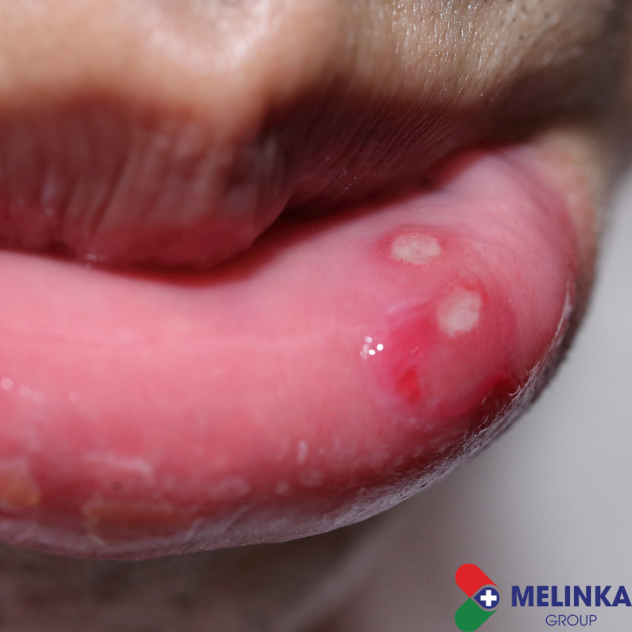 Biểu hiện của bệnh là: trong niêm mạc miệng xuất hiện một hoặc nhiều đốm trắng to 1 – 2 mm, đốm trắng to dần hơi mọng nước, vài ngày sau đồng loạt vỡ ra tạo thành vết loét. Vết loét to dần, có khi tới 10 mm làm ảnh hưởng nhiều đến ăn uống sinh hoạt và giao tiếp.