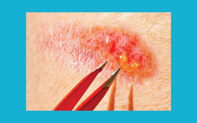 Nếu bạn thấy bụi bẩn hay các mảng vụn ở vết cắt, hãy dùng nhíp đã được làm sạch bằng cồn để nhẹ nhàng gắp chúng ra.