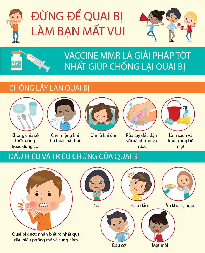 Quai bị là bệnh do Paramyxovirus gây ra. Virus này làm viêm các tuyến nước bọt mang tai, khiến chúng to dần trong khoảng 3 ngày và sưng lên sau khoảng 1 tuần. Bệnh nhân quai bị thường có dấu hiệu nuốt nước bọt đau, mặt sưng 2 bên, khó nói nó nuốt, đôi khi là khó thở.