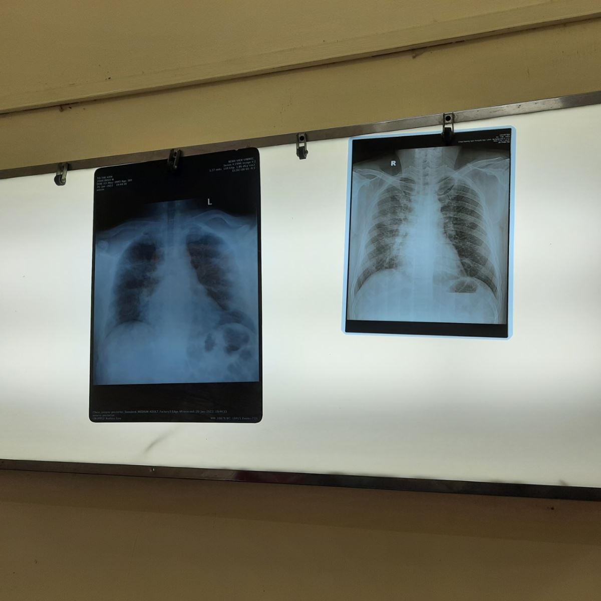 Vì sốt cao liên tục, chỉ số đo SP02 ở nhà tụt xuống 87, 88, hơi thở ngày càng trở lên khó khăn nên đến ngày thứ 8 tôi phải cấp tốc nhập viện gấp để thăm khám. Theo kết quả chụp X-Quang, bác sĩ chẩn đoán, viêm phổi do virus Sars-Cov 2, phổi mờ 2/3, được xếp vào loại khá nặng.