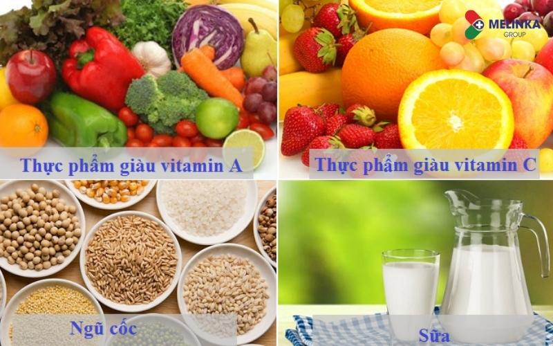 Bệnh nhân bị viêm phổi có thể lựa chọn bổ sung vitamin A thông qua các loại rau xanh như rau muống, rau xà lách, rau dền; các loại củ quả có màu vàng đỏ như gấc, hồng, xoài. Vì vitamin A là vitamin tan trong dầu nên khi chế biến thực phẩm có thể cho thêm một ít dầu thực vật để tăng khả năng hấp thu vitamin A.